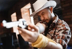 Квест на день рождения «Где-то на Диком Западе»: В салуне на Диком Западе сегодня жарко! Ковбои поспорили, что будет быстрее — перезарядить револьвер или попросить бармена долить еще? Шерифу придется делать нелегкий выбор между правосудием и бокалом.